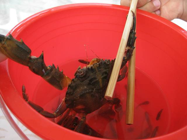 这里的石头缝里全是小螃蟹,浅滩处还有大螃蟹,恩,看到别人的攻略说可以捞螃蟹,哈哈