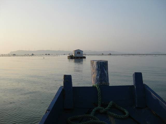 第二天一早,4点半起床,5点和老板出海,我们坐着小船,驶向海景房。出海要提前和老板商量好。
