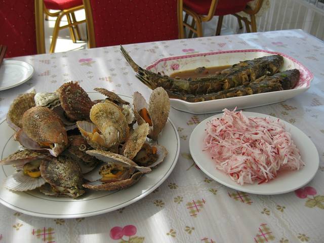 到达渔家乐,先梳洗整顿下,然后换鞋,直奔渔家乐门口的小海岸,一气呵成(早就调查好了)