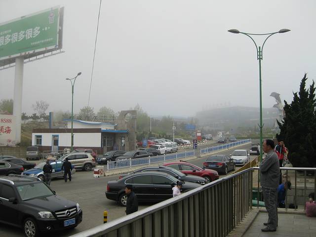 在蓬莱码头住了一晚,因为当天到达后,海上起了大雾,没法开船,所以只能等第二天雾散了。黄昏后就在码头附近逛了逛,走到了蓬莱阁,那里也有海岸,绿化非常的好,再配合着大雾,如临仙境一般。