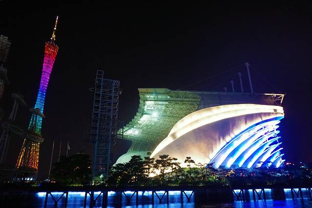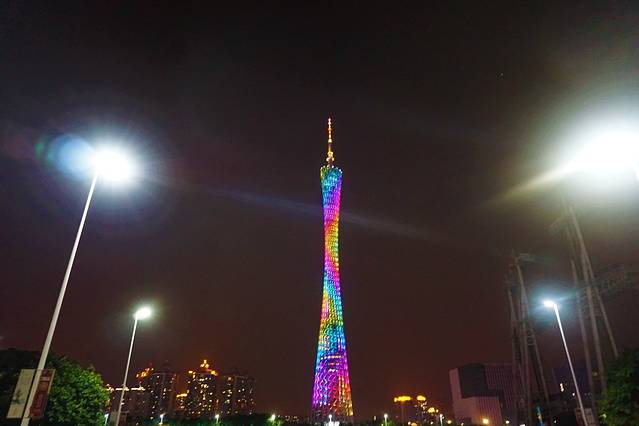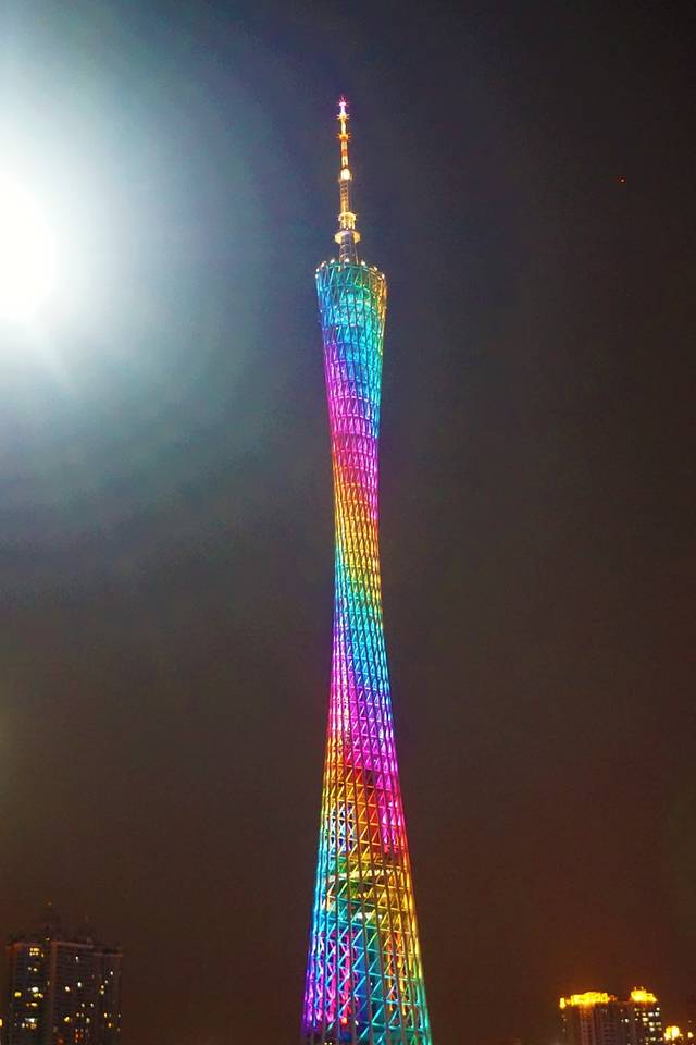 作为地标式建筑,广州塔不仅有着变换的色彩,还可展现出动人的“空中交响乐”