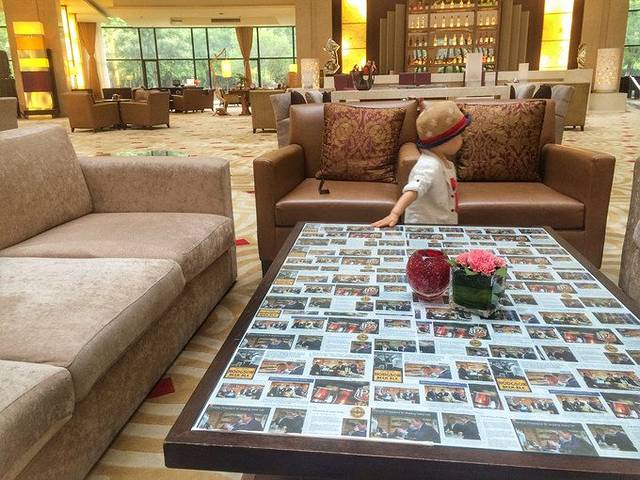 酒店大堂精巧时尚,色彩明快,一进门就被墙上的充满旅行动感的图案吸引。
