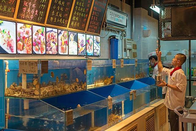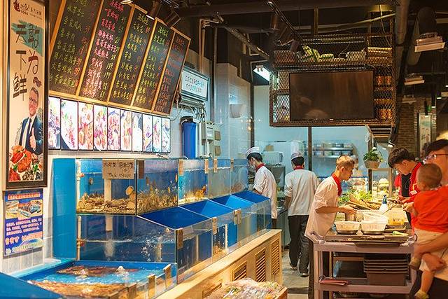 天津老话,借钱吃海货,不叫不会过。海中鲜类似北京的京深,一层是海鲜采购广场,二层是可以加工的酒楼。