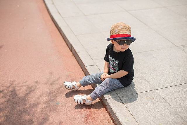走累了的小孩儿,坐下来,等着抱。