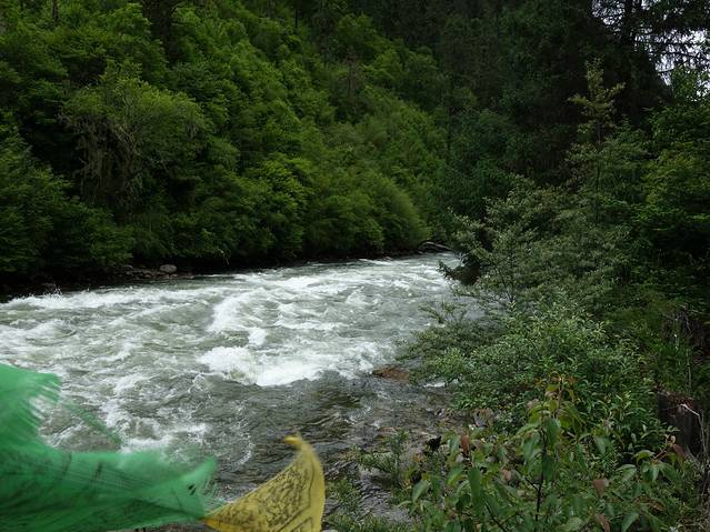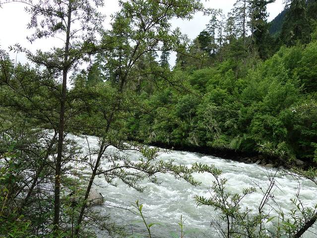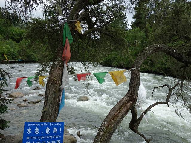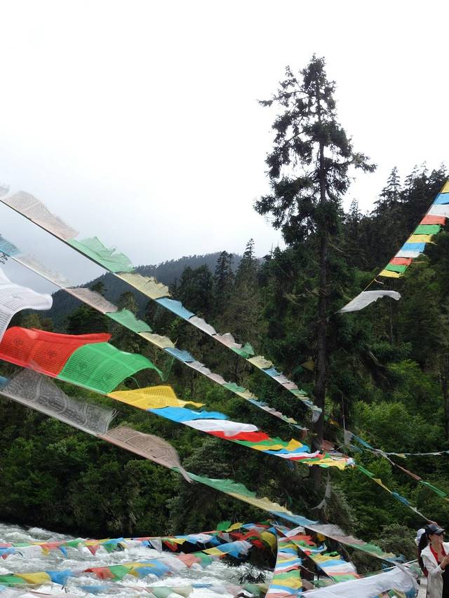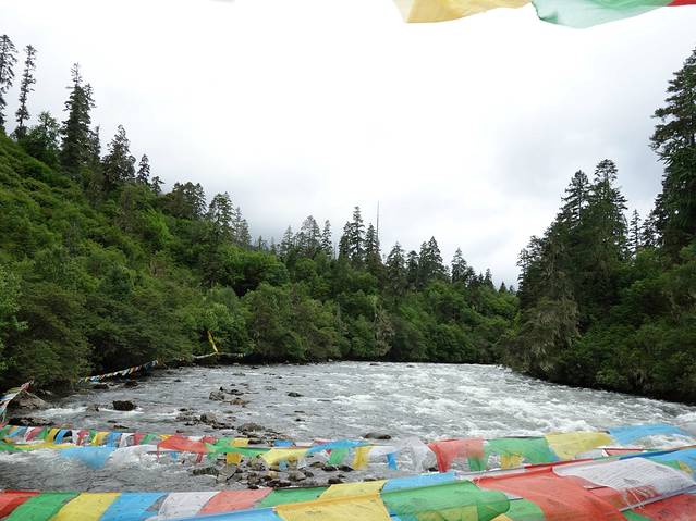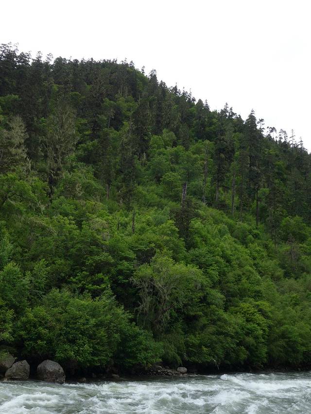 南伊沟是喜玛拉雅山脉无数个美丽沟谷中的一个,她纵深40多公里,有着古老的历史传说、独特的珞巴风情、茂密的原始森林、俊秀的南伊曲水,充满了魅惑。南伊沟的独特体现在自然对文化的理解和诠释,人类对自然的索取在南伊沟体现得是那么自然和谐,这里的色彩是那样艳丽可人。她横穿喜玛拉雅山与雅鲁藏布江相连,集茂密的原始森林,大型的草甸,奔流不息的河流,巍峨的雪峰为一体。我不知道先人对水与山的理解,当你置身其中会被这里的自然景色所感动,这里没有空气污染,挂在树上的寄生植物松萝就是一个有力的证明。放眼望去:沟谷两侧,林木参天,青冈、云杉、桦树、柏木翠绿幽深;淡黄色的松萝,从高大的树权枝丫间垂下,有如童话剧中仙女的帷幔;林间草木繁茂,野花摇曳,红色,黄色,娇艳欲滴,妩媚动人;湍急的南伊曲水在谷间轰然鸣响,翻腾的浪花晶莹剔透,洁白如玉;路边搁置的巨大圆木,静静地躺在野草花之中,诉说着一段古老与沧桑。你就会有崇敬之感,心中就会想到那些转经人神态自若,步履平稳地为自己的生活祈祷,为美好的未来祈祷。