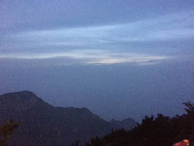 当我们下山2个多小时,太阳出来了,仍然若隐若现示人~