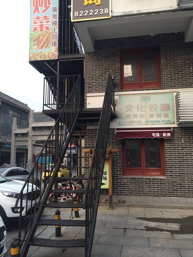 这是老县衙附近的,从铁楼梯到四楼有露天的烧烤海鲜,然后我们就在那吃的!
