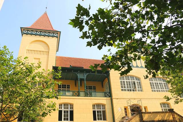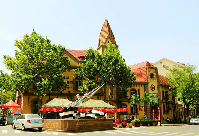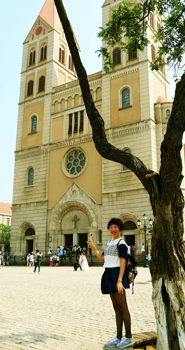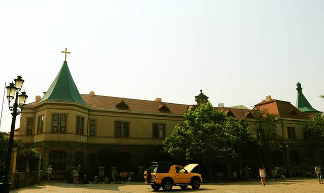 栈桥附近的景点非常多,我们选择沿着江苏路一路前行,沿途经过邮电博物馆、圣弥爱尔大教堂各种红瓦的小洋楼非常有特色。
