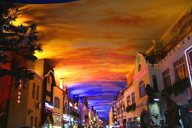 第四天想去天幕城和八大关去看看。天幕美食城是青岛市唯一的室内步行商业街,位于青岛城市中心区,紧邻青岛市消费人群最集中、最繁华的台东商贸区。到达之后,感觉没有想象的好,里面的商铺大多已经关门歇业,不是很景气的样子。随便拍几张就去青岛啤酒博物馆了。