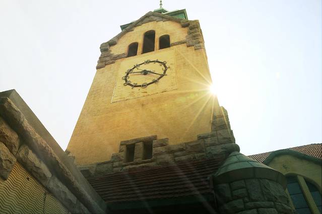 由于是礼拜天,教堂有活动,在外面拍一张