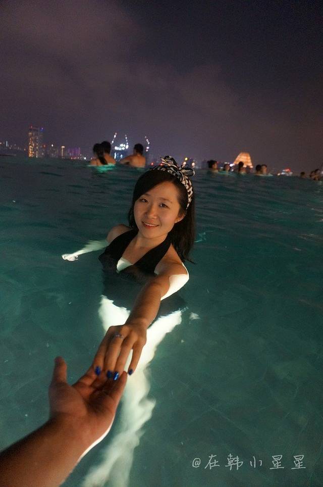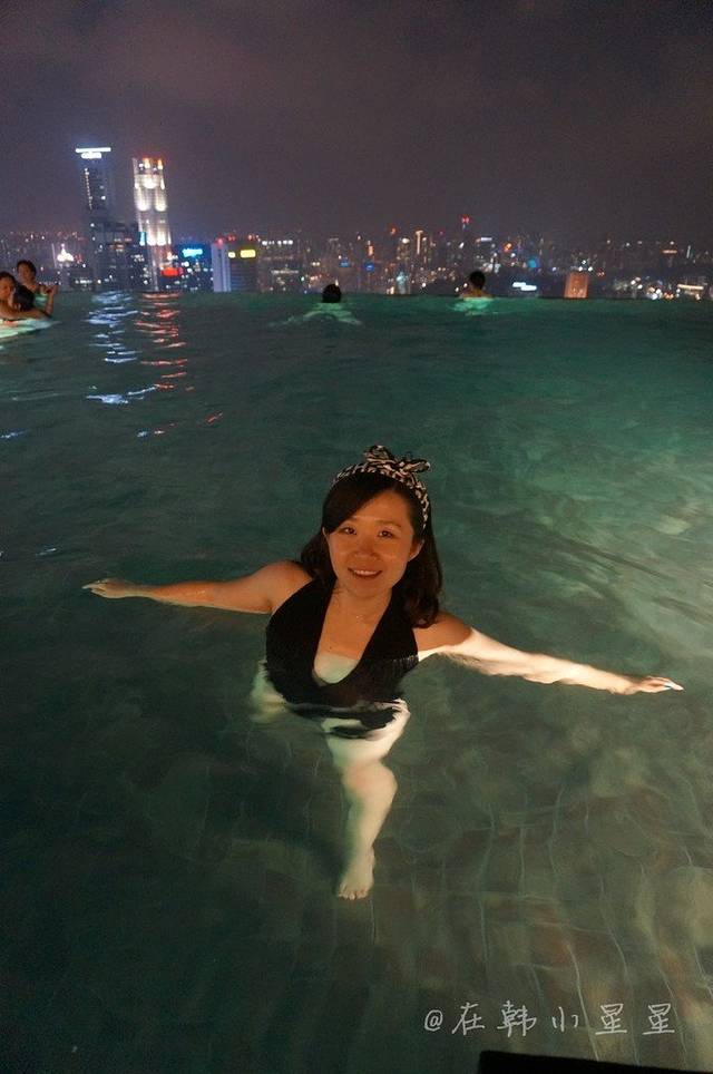 全球最高的户外无边界泳池,长达150M,水深1.2M,同时面对当地最密集的金融商业大楼,夜间灯火璀璨无以伦比。。。