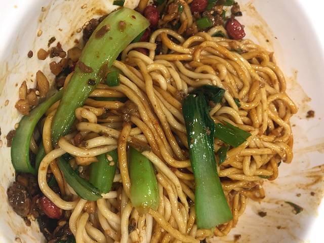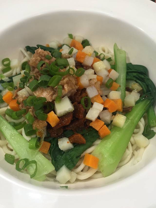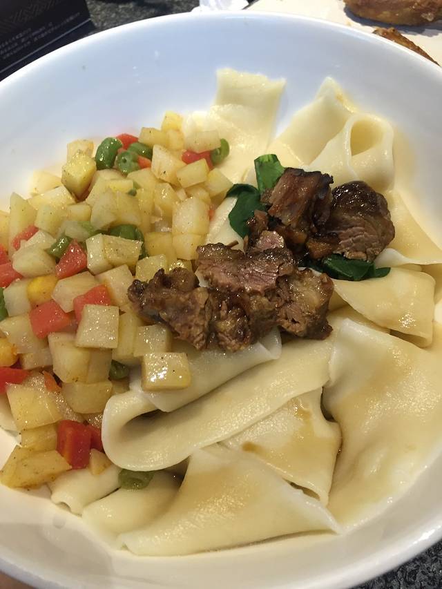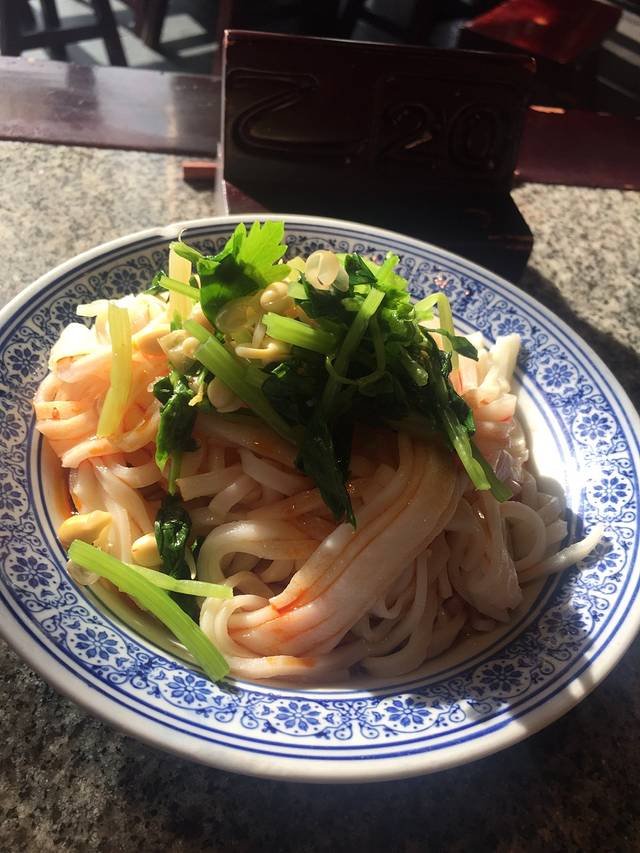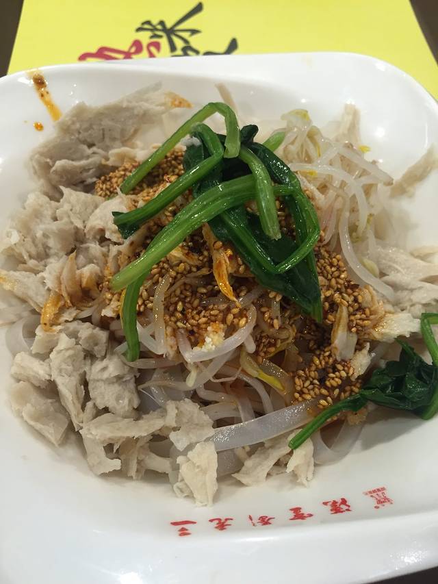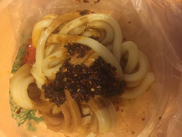 腊汁肉拌面,也没什么滋味,面条口感特别好,但是味道很淡,加了点凉粉,中和一下味道,勉强能吃。