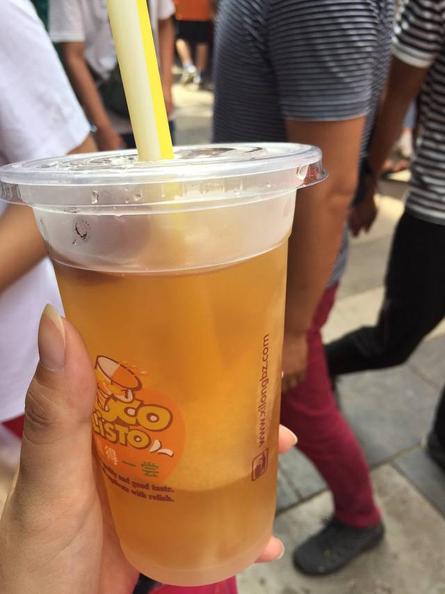 又买了西瓜凉茶,还在邻居魏家凉皮门口又买了这个饮料,也是7元,有雪梨和椰果。