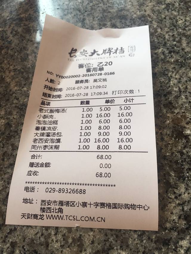 五元还是十元我忘了,应该是五元吧,冰糖雪梨,还可以,味道淡淡的,没什么特色。还买了花奶奶酸梅汤,是一个叔叔卖的,不知道是不是正宗,五元,和之前在马路边买的味道差不多。还买了石榴汁,十元,根本不是鲜榨的,不好喝,千万别买。肉夹馍15元,很难吃,和刘老三没法比,照片我都懒得照。那家没人排队,可能都知道不好吃,有个白家和孙家,特别长的队,应该不错。