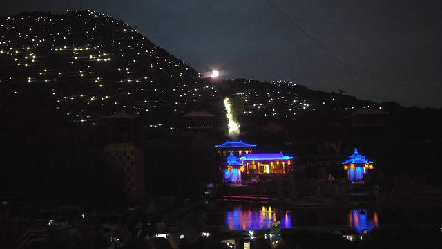 当山上突然亮起灯时,所有人都发出赞叹的声音。