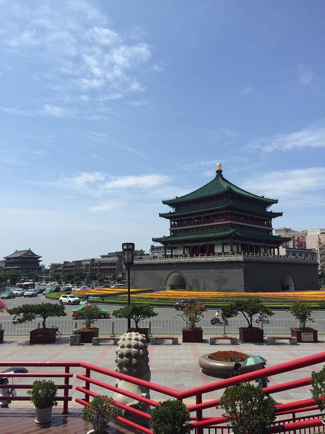 离鼓楼很近,比鼓楼高,可以再上去一层,视角挺好,可以看很远。想去看夜景,所以没赶得上钟楼的表演,西安天黑的比较晚,夜景也没看到,略表遗憾。