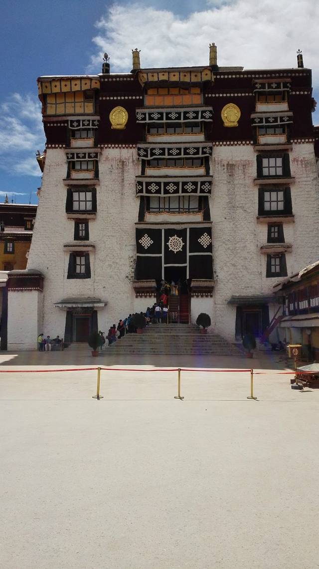经历了一上午风云诡谲的购物,我们带着各种奇怪的药和纪念品,终于来到了布达拉宫前。其实昨天那人真的是朋友,应该说不买东西的后果很严重才对。我们在骄阳下望着这个标志性的画面感觉毫无新义,二个小时后,在布达拉宫快停止检票时,我们才得以顺利通过四道门的检验,进入宫内。