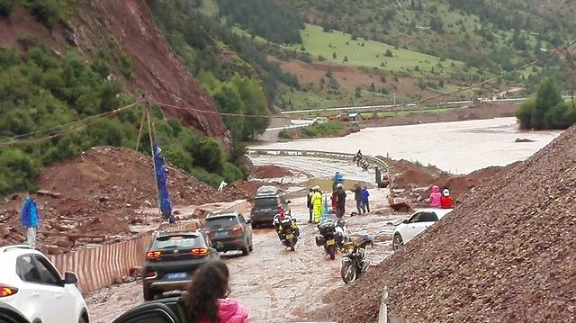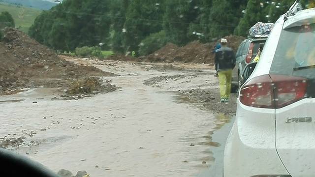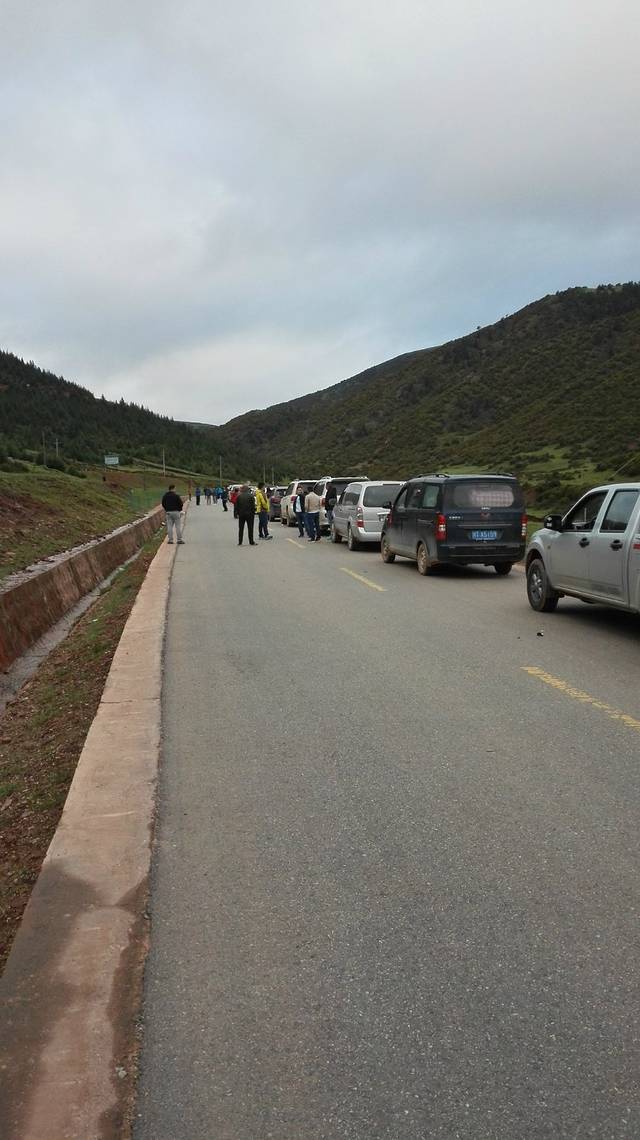 正在拍照发呆,忽然发现路上的车多了起来,堵成了一条长龙。这时王子急匆匆赶来,把我们召集到一起,“前面的路刚刚又塌方了”