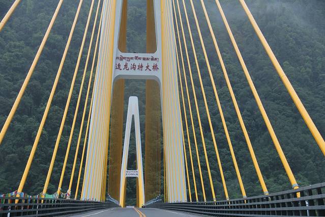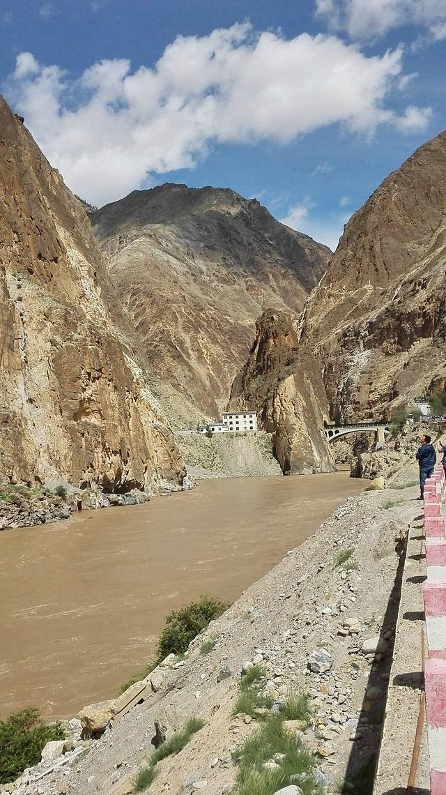 由于亚丁的的路弯儿太多,诗人最后还是用上了呕吐袋。于是今天大家商定要开得慢些,好在行程不远,大家一边说笑着,来到了金沙江的渡桥。