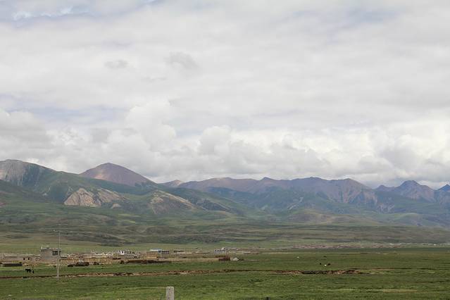 这里是藏北的草原,翻滚的白云下,黑色的牦牛在绿草间悠闲的度日。由于海拔太高,草地已无法漫过群山。