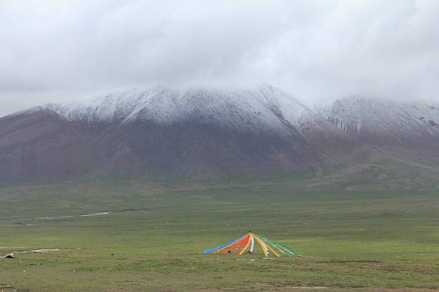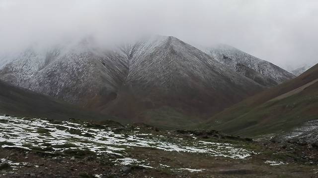 已经看到雪线了,虽然还很远,但已觉得寒冷。车里的人都加了衣服。孤独和寂寥在整个高原游荡,人在这里已不是主人,哪怕看到一点人文的痕迹,也让人倍感欣慰。