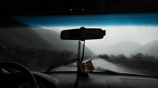 很多外地车都趴在路边不敢冒进,我们则在王子的鼓舞下,顶雨前行,体味一次海燕般的勇敢。