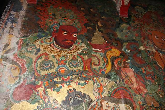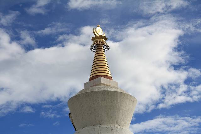 到了山顶,雨小了很多,只看见铺天盖地的经幡和几头昂然肃立的牦牛雕塑,似在告诫旅人已到了圣地,应知道谦卑。