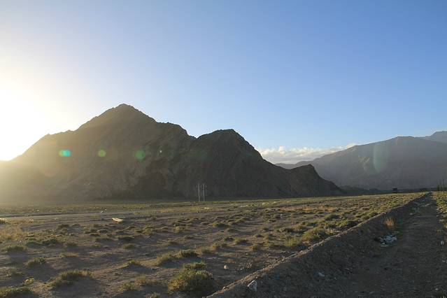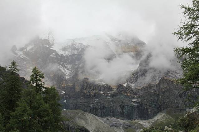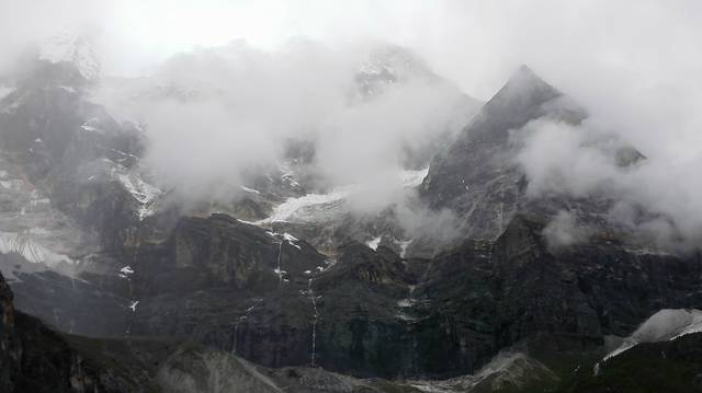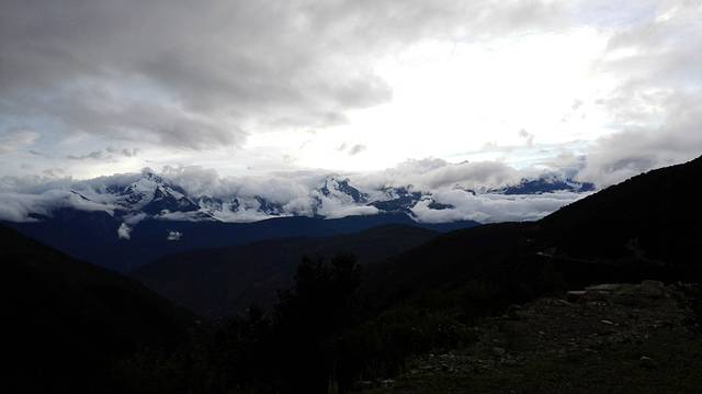 落日用尽最后的力量,为我们点亮背景,让我们看到了在云雾中游荡的主峰。它就象神一样张开双臂,安静了整个世界。这座海拔6740米的主峰至今仍是人类未能征服的“处女峰”,也是唯一一座禁止攀登的高峰。