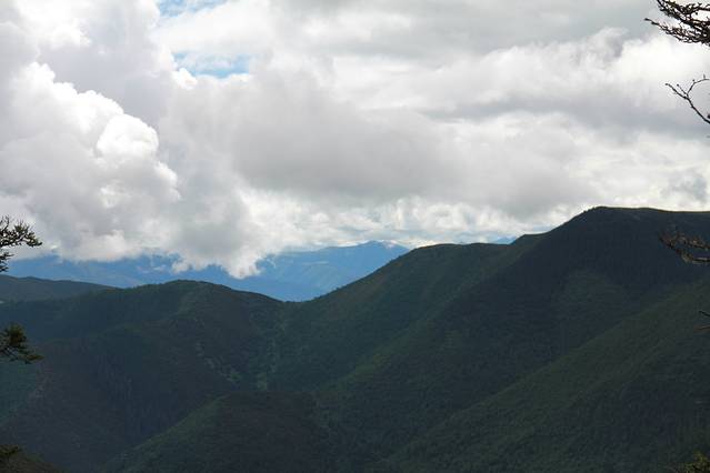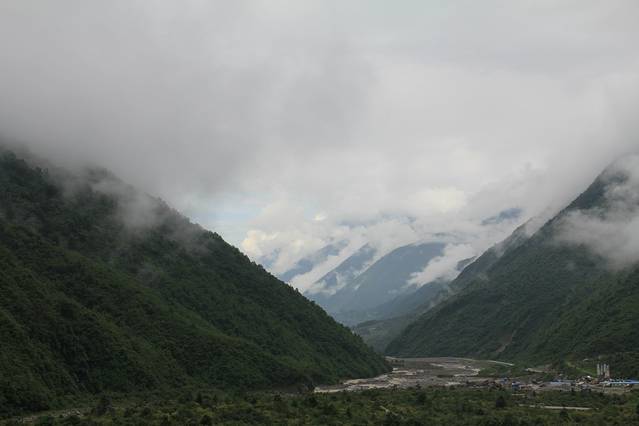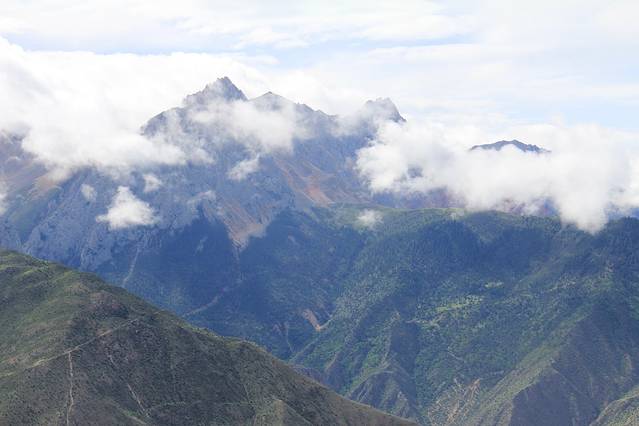 我们穿行在横断山脉,它是我国地势第二级阶梯与第一级阶梯交界处。山岭海拔多在4,000~5,000公尺,岭谷高差一般在1,000~2,000公尺以上。山高谷深,横断东西间交通。