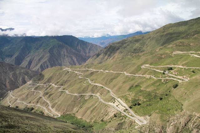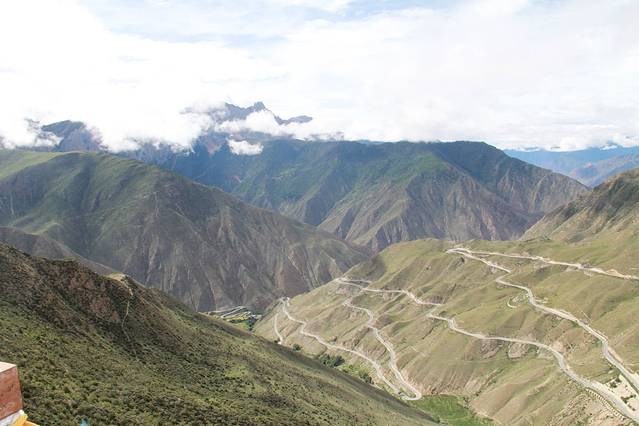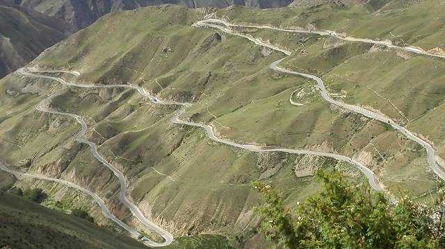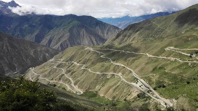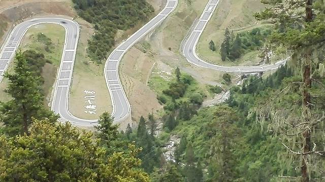 这条路叫天路七十二拐,是用很多中华儿女的青春修建的,修了几十年,在2010年才通车。在这条路上走,有一种登上长城的感觉,除了会感慨自然风光的壮丽,你会觉得这条路只有中国人才能把它修完。它太长又太险,“之”字形的排列就象是在随意的涂鸦。从山下的2700米的怒江河谷到4618米的业拉山口,海拔落差接近2000米,这条公路只能在山间往返折回!由于公路在这里的折回次数连续集中,竟然一连拐了上百个180的回头弯,是川藏线上拐弯最多的路段。