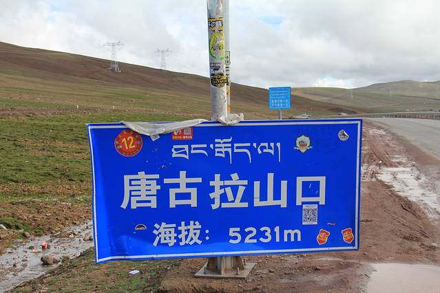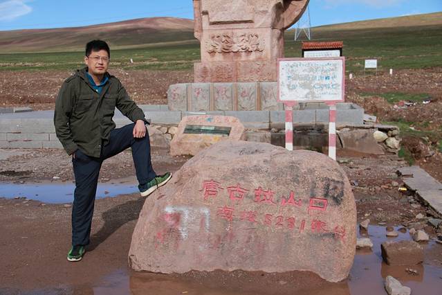 这就是唐古拉山口,青海、西藏两省的天然分界线,视野开阔辽远。这一带是一片冻土,泥土层的水长年结冰。山口天气极不稳定,即使夏天,公路也经常被大雪所封。今天的天气还不错,阳光照射下很多冻土和积雪化开形成了一些水洼。此处空气含氧量只有海平面的六成,经过好几天的奔波加上高原反应,曾经的追风大叔已经完全本地化了。