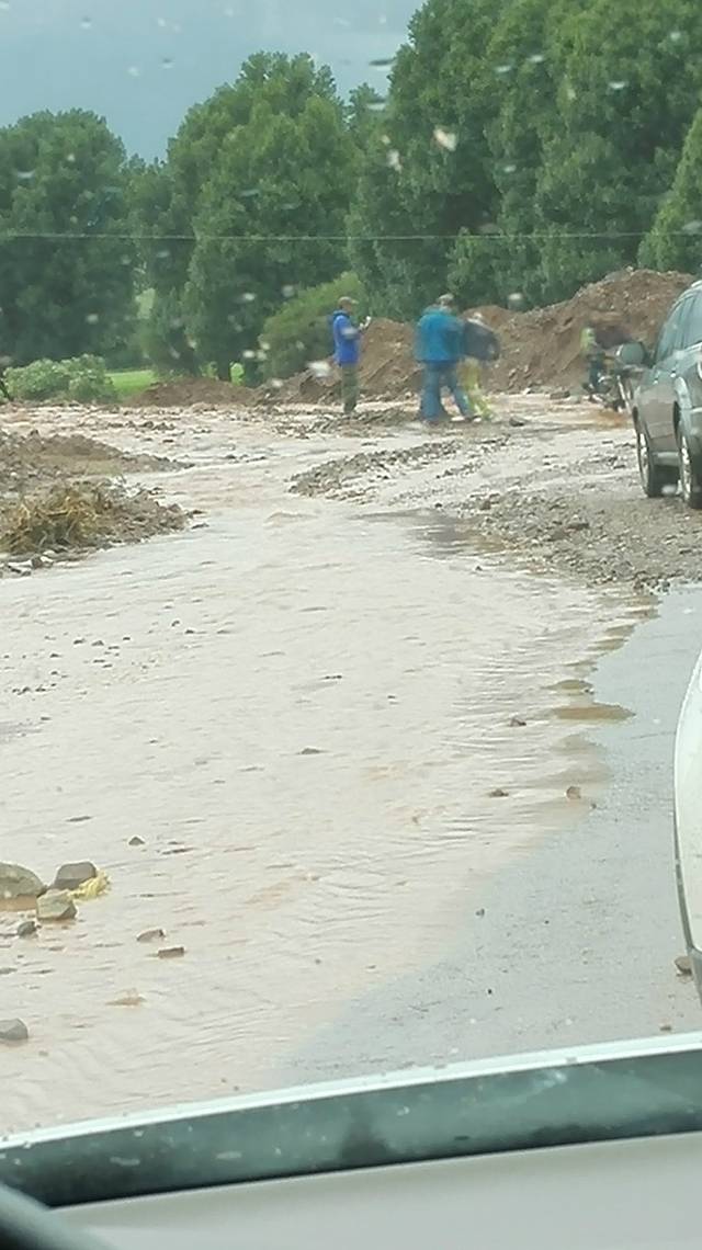 路面在大雨中被山上的洪水冲断了,我们的车在一片惊呼中,率先冲过险滩,这需要高超的技巧和勇气,后面的车才鱼贯而过,可惜这段珍贵的视频无法上传,这张照片是我们冲刺前的路面。