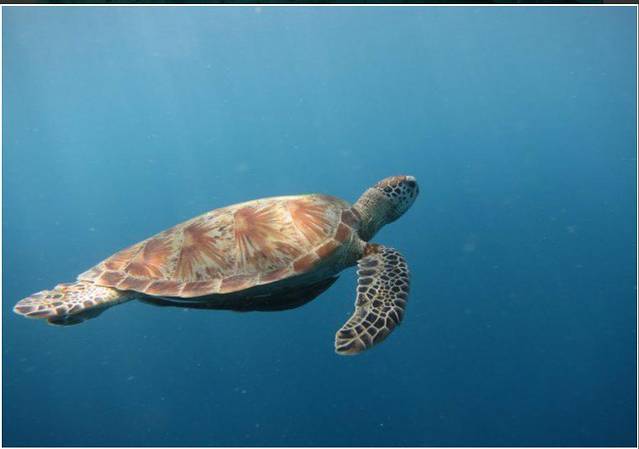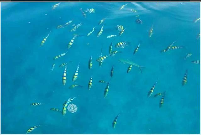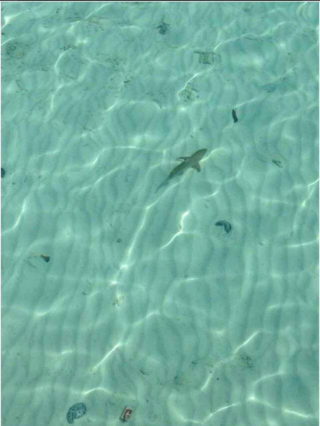 听他们说深水区可以见到大鲨鱼,但因为第一次浮潜,所以一开始没有太敢往深水区走,当适应好准备往深水区游时却被喊回去了,所以就没有看到大鲨鱼。