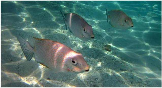 当然这里还可以看到了很多漂亮的热带鱼,当然这里的热带鱼比诗巫岛浅滩上的要多得多,而且感觉颜色更漂亮。