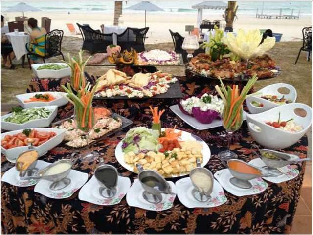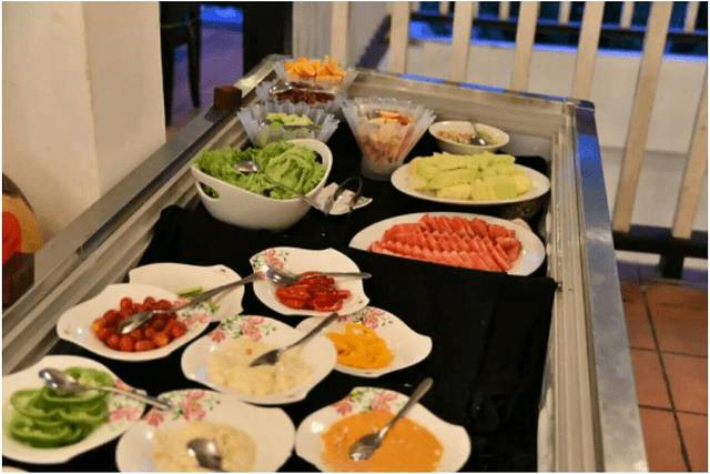 没想到酒店的食物还不错,吃饭的方式是自助餐,我来的时候,服务人员已经将自助餐的食物摆放好了。食物很丰盛,肉多为海鲜,副食为蔬菜和水果。