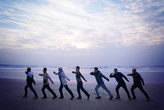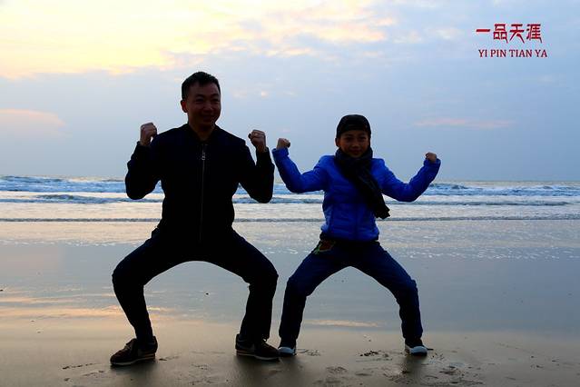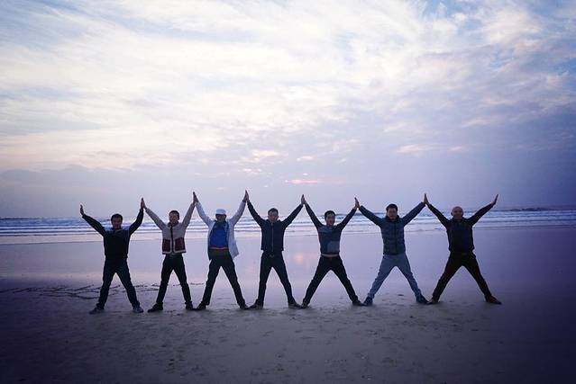 为了迎接第一道曙光,所有人便早早的走到海边等待日出的来临。遗憾的是,由于云层太厚,我们未能见到海上日出的景象。但可喜的是,大家并没有因此而失落,反而更加兴奋。于是,2016年的第一场九宫格摆拍就此拉开序幕。