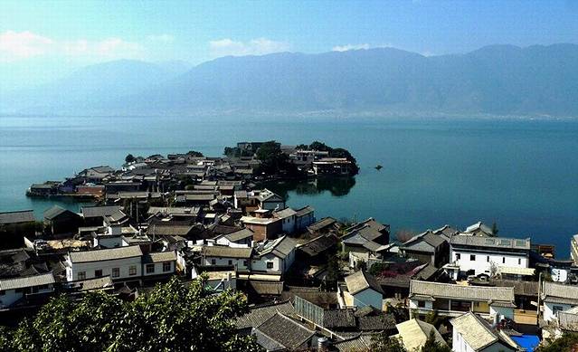 沿着双廊古镇走着走着就到了南诏风情岛。50块钱的门票+船票,除了坐船途中看到的景色还不错....可以远远看到玉矶岛上杨丽萍的太阳宫。