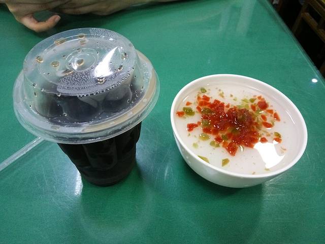 最后一上午打算好好逛逛前门,早餐吃烧卖,午餐吃炸酱面,买点糕点,带点鲍师傅肉松饼,结果没想到病得起不来,只是“爬”到了都一处,刚到都一处,烧卖上来了,连筷子都拿不起来,饭都加不了,就趴在桌子上睡了一觉,起来稍吃了口,见人不是太多还有空位,就继续睡,一共睡了差不多两个小时。喝了一杯桂花乌梅汤,听说这酸梅汤是朱元璋病入膏肓的时候发明的,喝了以后病就好了,我下午的命估计就是这酸梅汤给的。粥其实不好喝,不建议点,跟学校食堂卖的稀饭味差不多,荷叶百合粥里就一瓣百合,没见荷叶。从这里到北京西站半个小时就够了,我最后用了1个小时才挪过去。