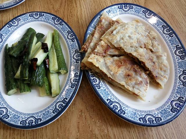 老板人很好,本来点了两份肉饼,老板说我们吃不了建议少点一份,第一次见让少点的老板,酸辣黄瓜很好吃,老板推荐的,很爽口,也不辣,蜂蜜腌的超好吃。
