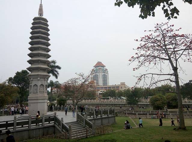 特别喜欢这个景,有好多游客在喂鸽子~放生池里也有好多龟~
