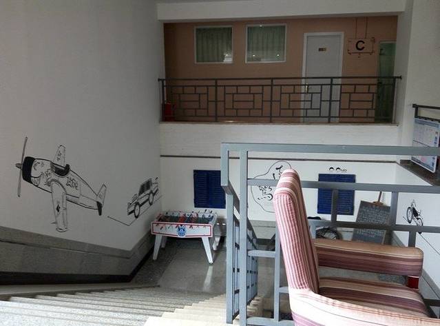 注意它虽然公共空间大,但是房间的面积是很小的,因为青年旅社本来就是鼓励你走出房间跟大家一起交流的啊~