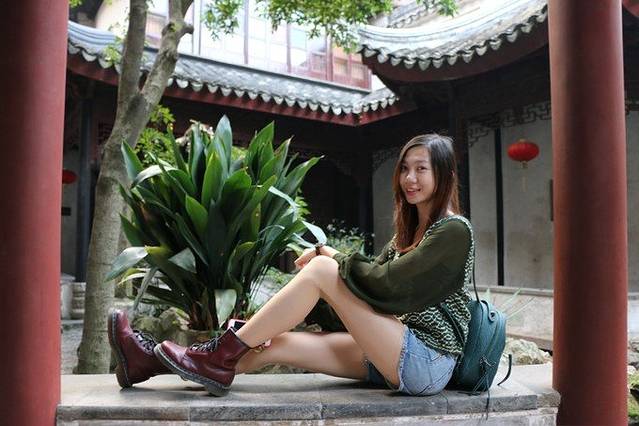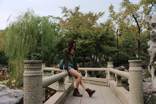 来到了漂亮的苏州园林。他们在拍婚纱照,我们自拍。