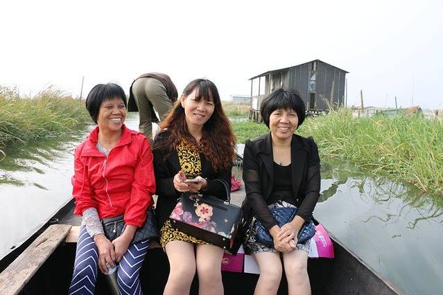 25日早,表嫂爸爸开着他的渔船,带着我们大家到他家湖上捉大闸蟹。