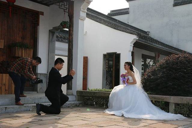 广东来的我们都觉着好新鲜,接了新娘竟然跑外面拍照了而不是马上摆酒。他们是今天接明天摆酒请客。听说一桌30碟菜喔。心里默叹苏杭土豪真多。
