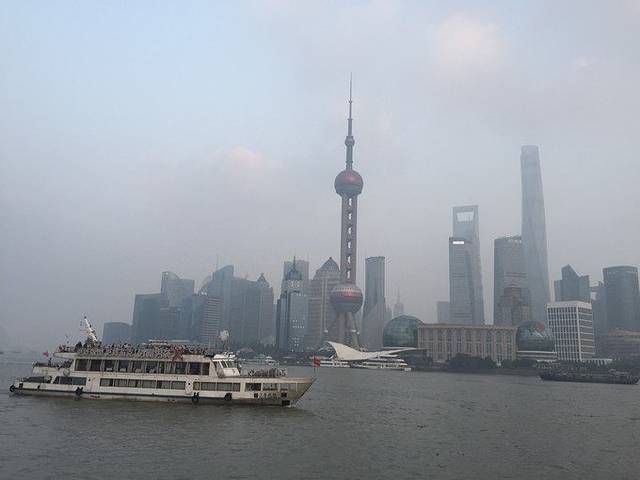 4点多的外滩天色开始暗下来,所有建筑物都蒙上一层灰色面纱。即使东方明珠塔就在眼前(对岸),拍照时也避免不了蒙灰。好可惜,没有遇见上海的蓝天白云。