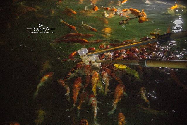 看到广场有人用奶瓶喂鱼,哈哈哈,好萌!