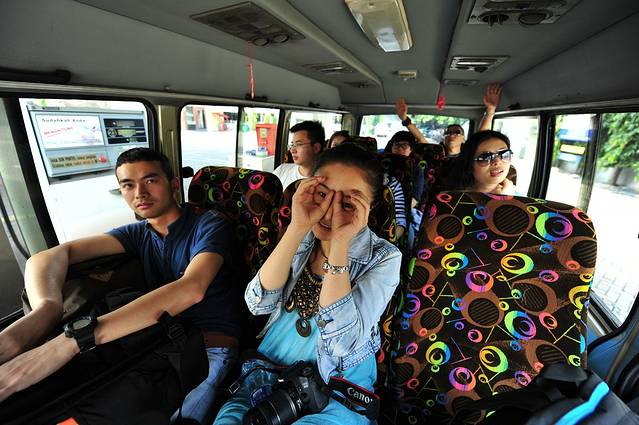 顺利入境后,在机场大厅与之前联系好的YOYO碰面。此次行程几乎都由YOYO一手包办,一辆迷你BUS,两天晚上的住宿和两座火山的接洽等等。每人210W印尼盾,相当于1100软妹币。YOYO是我一个朋友介绍给我的,出发前2个月在网上和他沟通后便行,人挺不错。就这样,我们上了车,向此次行程的第一站BROMO前进!
