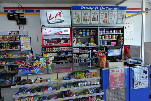 不知不觉,车已经行驶了2个多小时了。偶然看到路边一个便利店,便让司机停了一下,进去采购一点午饭。在印尼随处可见这个便利店的连锁,有点像711。