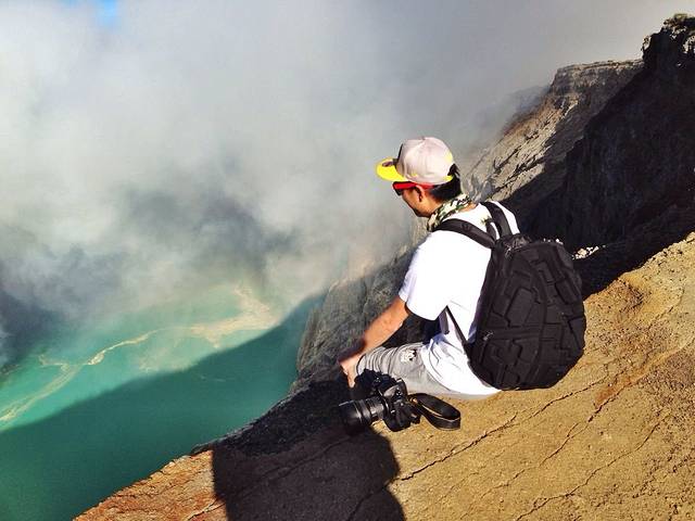 我淡定地坐在火山口,脚下就是悬崖。好吧,我承认还是有点怕的。不过看着眼前的一切,我的世界仿佛静止在这一刻了。