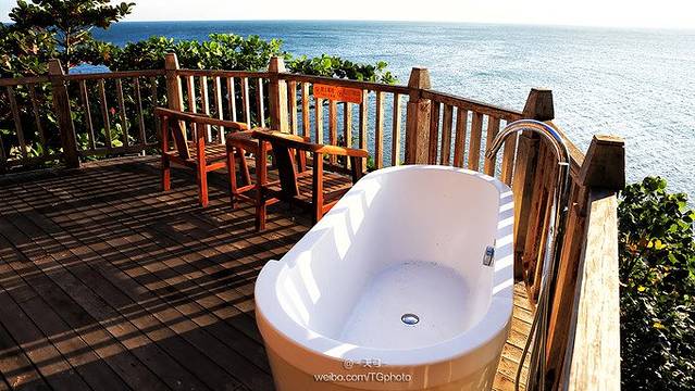 这浴缸从这个角度看私密性还是很好的,只是回头一看马路旁边观景平台的游客可以把你看个精光!